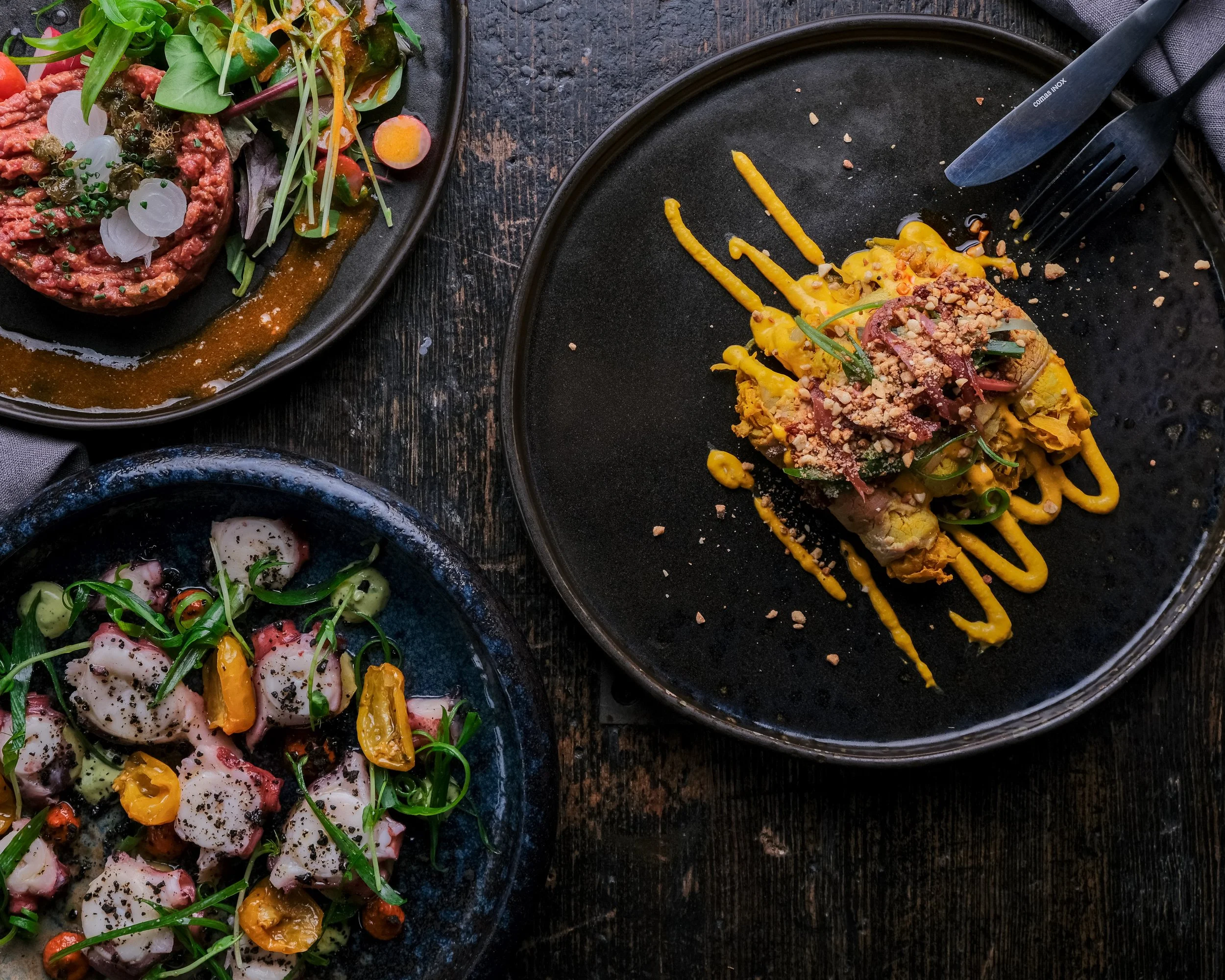 Maa'Deyo ist ein Restaurant & Bar mitten in Hamburg St. Pauli. Südamerikanische Küche, die mit deutschen Produkten, Fermentation und präziser Schärfe überrascht. Gerichte zum Teilen — klar im Charakter, intensiv im Geschmack. Dazu Jazz & Soul, Kunst und eine Atmosphäre, die Hamburg so nicht kennt. Silbersacktwiete 6 · direkt an der Reeperbahn.